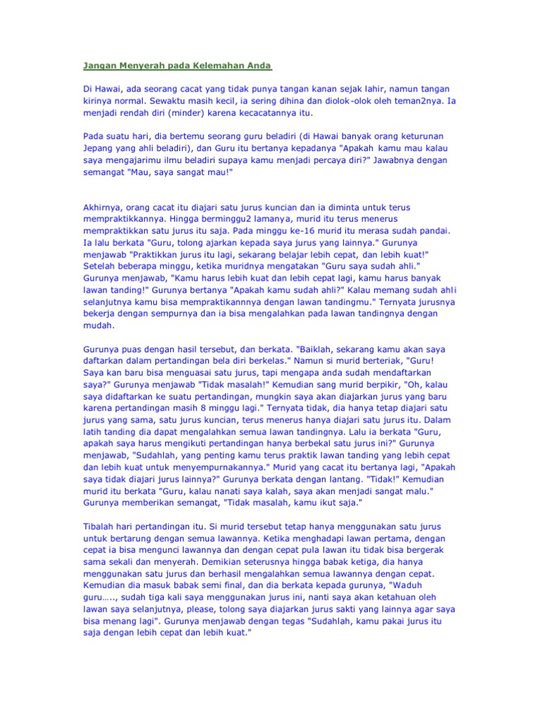 KATA-KATA BIJAK UNTUK MOTIVASI DALAM MENJALANI HIDUP - YouTube from i.ytimg.com Hambatan seperti lingkungan yang buruk, hinaan, dan keterbatasan fisik adalah sesuatu yang tak terelakkan. Saat itu, ada petani duduk di tepi sawah dan melihat ladang. Nah, setelah melihat dari cerita pendek tentang motivasi kerja sama tim tersebut, maka kini saatnya memahami manfaat bila bekerjasama secara. Dalam mencapai kesuksesan dibutuhkan perjuangan yang berat. Rasa tersebut juga yang akan menjadi motivasi anda untuk terus melangkah ke depan. Kumpulan kata motivasi penyemangat kerja 2 alergi marketing via alergimarketing.blogspot.com. Saat sedang jenuh, merasa lelah, atau penat akan segudang aku kerja keras karena sadar aku nggak punya tuyul. Anda tentu pernah mendengar cerita mengenai orang yang memelihara tuyul, bukan?